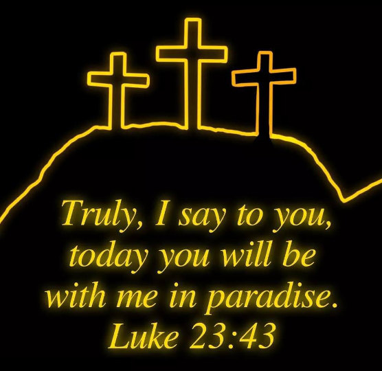 43 Jesus answered him, “I tell you the truth, today you will be with me in paradise.”
